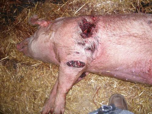 Mokra, to typowa śląska, rolnicza wioska. Idąc wieczorem do sąsiada niektórzy zostawiają otwarte drzwi domu i klucze w zamku. Co się dziwić, że wejścia do obory nie ryglowali. Przynajmniej dotychczas. Mokra, to typowa śląska, rolnicza wioska. Idąc wieczorem do sąsiada niektórzy zostawiają otwarte drzwi domu i klucze w zamku. Co się dziwić, że wejścia do obory nie ryglowali. Przynajmniej dotychczas. - Drzwi nie były zamknięte, bo niby czego się miałem obawiać? – opowiada Roman Wilczyński – Obora jest jakieś 100 – 150 metrów od domu. W nocy nie słyszeliśmy niczego podejrzanego. Rano jak co dzień poszedłem do zwierząt i zobaczyłem nieżywego świniaka. Dużą sztuka, miał ponad 100 kilogramów. Leżał pocięty, pogryziony w chlewiku. Rozdarty bok, wyjedzone z tyłu i pod łopatką. - Siedem lat prowadzę hodowlę i pierwszy raz zdarza mi się coś takiego – mówi Sebastian Wilczyński, kolejny poszkodowany. Siedem zagryzionych cielaków, to ok. 5 tys. zł. straty, której nikt rolnikowi nie zwróci. On też przyznaje, że drzwi do obory były nocami nie zamknięte. Wchodzi się do niej od strony placu wypełnionego sprzętem rolniczym, ogrodzonego. To środek wsi, wokół droga asfaltowa, domy. Nikomu do głowy nie przyszło, że w takim miejscu może zaatakować drapieżnik. Sebastian Wilczyński pojechał na policję dopiero gdy usłyszał o kolejnym ataku. Jego brat Kamil Wilczyński po drugiej stronie placu hoduje warchlaki. Miesiąc temu jednej nocy stracił ok. 30 młodych. Część przepadła, kilkanaście znalazł zagryzionych w różnych miejscach obory. Nawet tego nie zgłosił policji czy weterynarii, pogodził się ze stratą. Dopiero teraz, gdy we wsi zagryzione sztuki znaleziono w trzech kolejnych gospodarstwach, rodzina skojarzyła tamten wypadek z ostatnimi. Bernard Hamerla, ostatni poszkodowany, mieszka na skraju wioski. Pierwszy dom od strony rozległych pól. Wejście do obory jest zaraz za domem, ale śpiąca w ostatnią niedzielę rodzina też niczego nie usłyszała. Rankiem znaleźli siedem zamordowanych warchlaków w zakrwawionym kojcu. - Prosiaki były niedawno po zabiegu kastracji – mówi Marek Wisła, lekarz weterynarii i pracownik powiatowej inspekcji weterynaryjnej. – Drapieżnik musiał wyczuć świeży zapach krwi. Wypchnął dwoje drzwi, w tym jedne zamknięte na zasuwę. Doktor Wisła pokazuje na komputerze fotografie padłych zwierząt. Wygryzione karki, nogi i pośladki. Długie na kilkanaście centymetrów cięte ślady, jakby zadane ostrymi pazurami z dużą siłą. Napastnik atakował w sposób typowy dla drapieżnych kotów, z góry, dopierając się do miejsc umięśnionych. Pies gryzie trzewia. zdjęcia dr Wisły: Bestia pozostawiła ślady… Dokładnie zbadano ślady dopiero w ostatnim przypadku, ale i tak zostały rozmyte przez padający w nocy deszcz. Jeden jest wyraźniejszy. Bez widocznego odcisku pazurów, same miękkie poduszki i charakterystyczny okrągły kształt jak u kota. Rozmiar – po przekątnej 9 i 11 centymetrów wskazuje, że zwierzę waży co najmniej 60 kilogramów. W kojcu na deskach został też kłak sierści. - Porównałem je pod mikroskopem z sierścią pumy, jaką dostałem z opolskiego ZOO – mówi dr. Wisła Z całą pewnością to nie jest ta sama sierść. U pum z Opola podszorstek, czyli spodnia warstwa sierści wygląda tak samo jak u domowych kotów. Sierść z obory Bernarda Hamerli ma obraz mikroskopowy sierści psiej. Adam Sierak, 2009-03-21 Strach i ogromne straty. Południowa część Opolszczyzny żyje ostatnio doniesieniami o “bestii z Mokrej”. Bestii zwinnej jak kot i polującej niestety z sukcesami… Obawy są jak najbardziej uzasadnione, bo we wsi Mokra na Opolszczyźnie swoje życie straciło już ponad czterdzieści sztuk bydła. O sprawcy wiadomo, że ma 4 łapy, sporą wagę i wrodzony instynkt zabijania. Na razie zwierze nie atakuje ludzi, ale specjalnie powołany sztab kryzysowy zaleca ostrożność. Obawy mieszkańców południowej części Opolszczyzny wydają się być jak najbardziej uzasadnione. Bestia atakuje i zabija. Na razie tylko zwierzęta. Życie straciło już czterdzieści sztuk bydła. Rzekomy agresor? Ma cztery łapy, na oko ponad 80 kilo i wrodzony instynkt zabijania. – Na razie tak szczęśliwie się składa, że zwierzę to nie atakuje i nie zbliża się do ludzi. Na razie zadowala się zwierzętami hodowlanymi - przyznaje podinsp. Ryszard Bałucki, KPP w Prudniku. Od dwudziestu dni w okolicach wsi Mokra na Opolszczyźnie poluje dzikie zwierzę, które nie daje szans hodowcom na jakąkolwiek obronę swojego dobytku. Mieszkańcy nie wiedzą też dlaczego bestia wybrała sobie na polowania akurat to miejsce. W ogóle wokół tej sprawy jest wiele niewyjaśnionych hipotez. Roman Wilczyński mimo, że od kilku dni w dzień i w nocy dogląda swojej hodowli, nie zdołał upilnować wszystkich zwierząt. Kilka dni temu drapieżnik zaatakował i zabił jedną ze świń. Jak mówi całą noc panował spokój, dopiero kiedy rano zajrzał do zwierząt okazało się, że jedna ze świń została zamordowana i pocięta. Weterynarz podejrzewał, że Wilczyński sam ją pociął. Jedyne, jak dotąd, nagranie z “bestią z Mokrej” pokazaliśmy fachowcowi. Pracownicy ogrodu zoologicznego po obejrzeniu materiału filmowego przypuszczają, że może to być puma. I właśnie takie rozpoznanie nie napawa optymizmem. – Puma jest dużym kotem drapieżnym, który potrafi zaatakować sporej wielkości zwierzęta gospodarskie, a jeżeli będzie głodna, jeżeli będzie chciała zasycić swój głód to zaatakuje i człowieka - wyjaśnia dr Sabina Nobis ze Śląskiego Ogrodu Zoologicznego w Chorzowie. Policja i służby weterynaryjne sprawdzają teraz tropy. Te które zostawił za sobą kot, jak i te, które mógłyby ich doprowadzić do przyczyny całego dzikiego zamieszania. – Albo komuś uciekło z transportu i osoba takowa nie zgłosiła, j